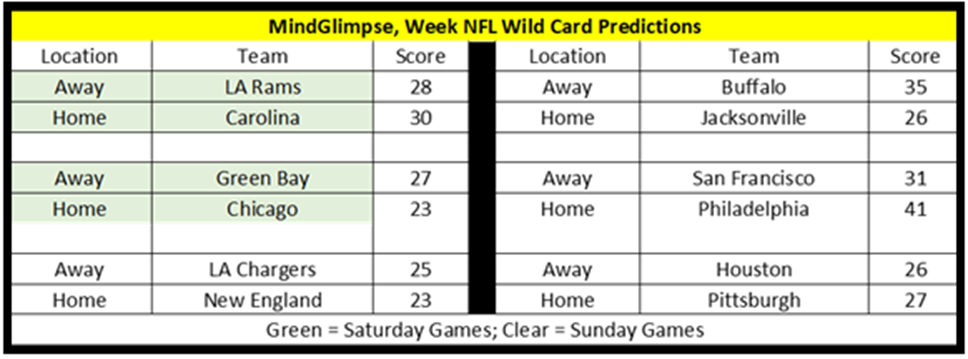MINDGLIMPSE PREDICTIONS: NFL WILD CARD